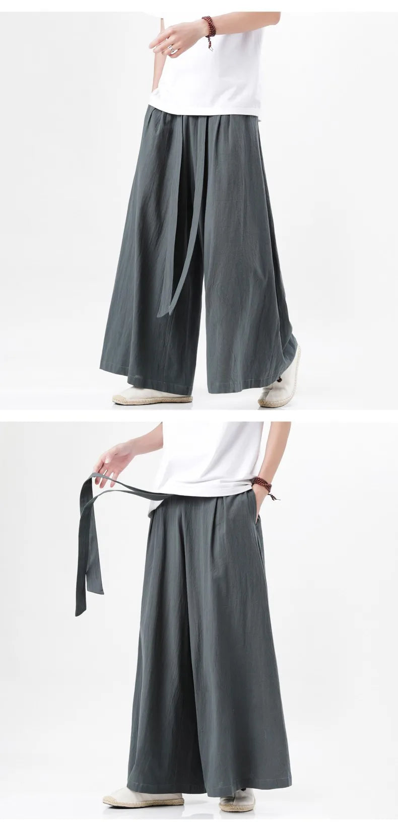 The Man Japanese Kimono Pants Male Streetwear Summer feature an elastic waistband with adjustable drawstrings for a secure yet flexible fit, along with deep side pockets for daily convenience. Their simple solid colors or minimal patterns make them easy to pair with T-shirts, tank tops, or kimonos for a variety of stylish looks — from laid-back streetwear to boho-inspired outfits.
